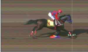 Como una yegua profesional abrió las puertas y a partir de allí, todo estaba definido, con Juan Eugenio Enríquez sólo acompañándola en su galope, al menos seis cuerpos de diferencia sobre Tía Monita (Eye On Jacob) que corre bien, pues siempre estuvo en persecución de la puntera. Hija de Asombrosa, por Quiet American, desde luego linajudo origen, egresada del Barlovento.