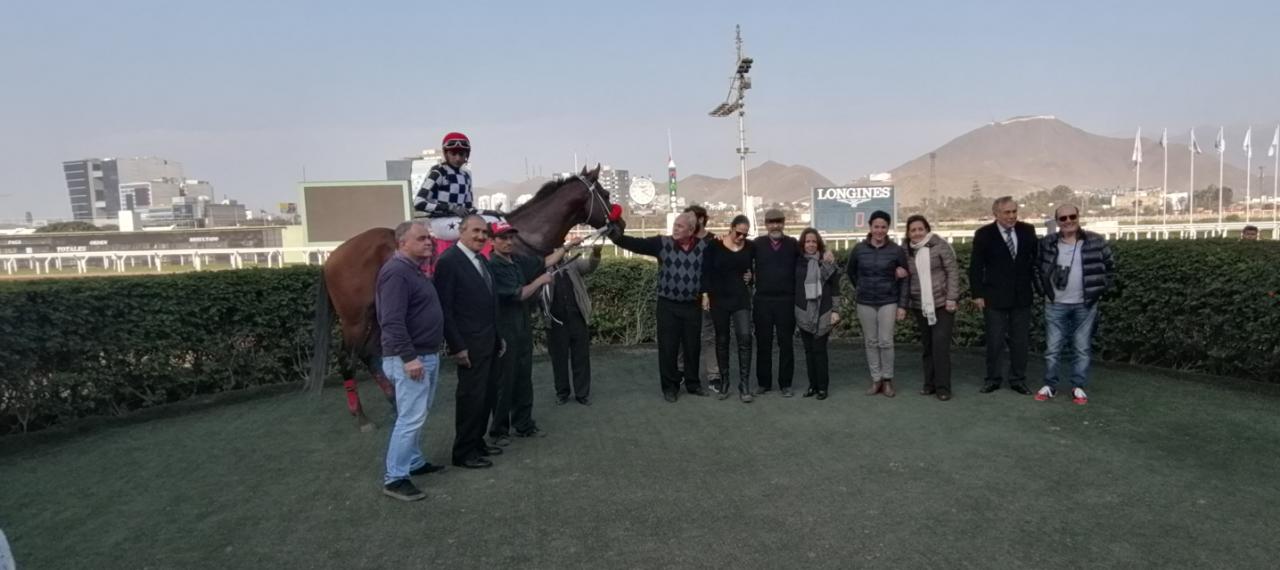 De los colores de Virginia Lucioni, la propietaria sirvió la ocasión para que gente amiga de la ‘ciudad blanca’ la acompañara en el herraje. Cañón de Cotahuasi solo ha corrido nueve veces, tres impactos ganadores sobre la pista de arena al mando de Jonathan Valdivia.Hoy en 1’47″y fracción sobre los 1700 metros.