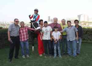 El preparador (camisa a cuadros) sostiene a una de sus mejores yeguas; su muerte causó gran tristeza (Foto JCP)