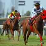 Esta vez, se colocó en persecución de Rey Elías, mientras Mr Baffert también presionaba – afuera- en un ritmo que exigió a los punteros en 47” y 1’10”4 para los 1200 metros.
