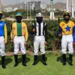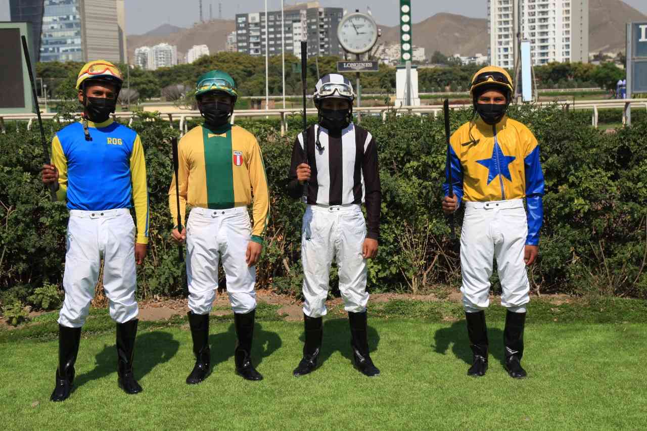 Integrantes de la Promoción Luis Suito Larrea, Joseph Gonzáles Baquerizo, Iván Salvador Nayra, Wilber Vilca y Edgar Yupanqui recibieron la fusta de la mano de las autoridades en la semana que comenzaron a recibir compromisos de monta para mostrar lo aprendido en la Escuela de Jinetes Jorge Bernardini Yori.