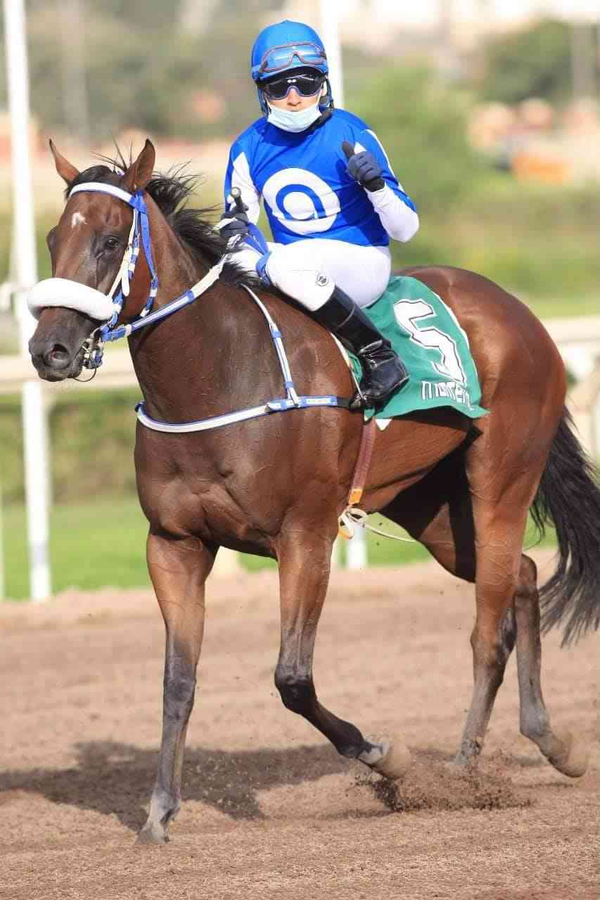 6TA: SORPRESIVO .- Tomó la punta en su estreno y fue imparable en la recta final ganando por 7 cuerpos en cómoda acción.