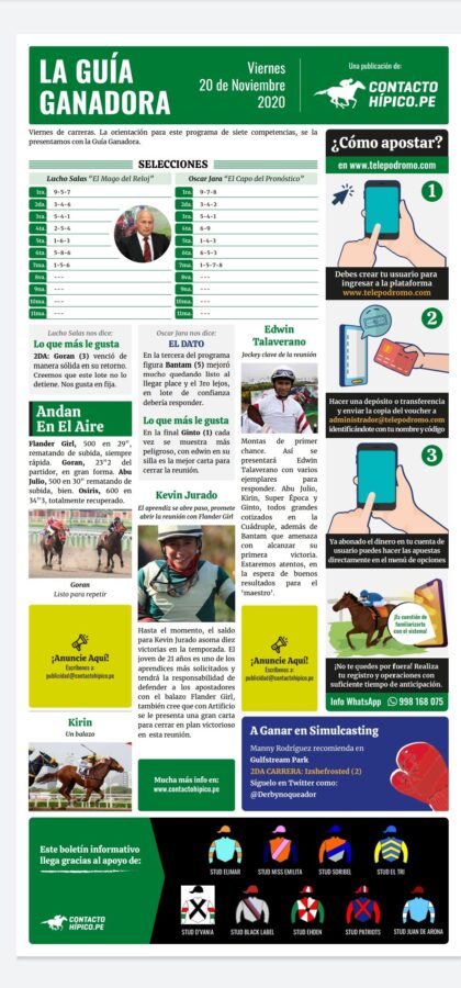 Serán siete carreras las que dan forma a la programación de este viernes. La orientación con los pronósticos de Lucho Salas y Óscar Jara, a continuación.