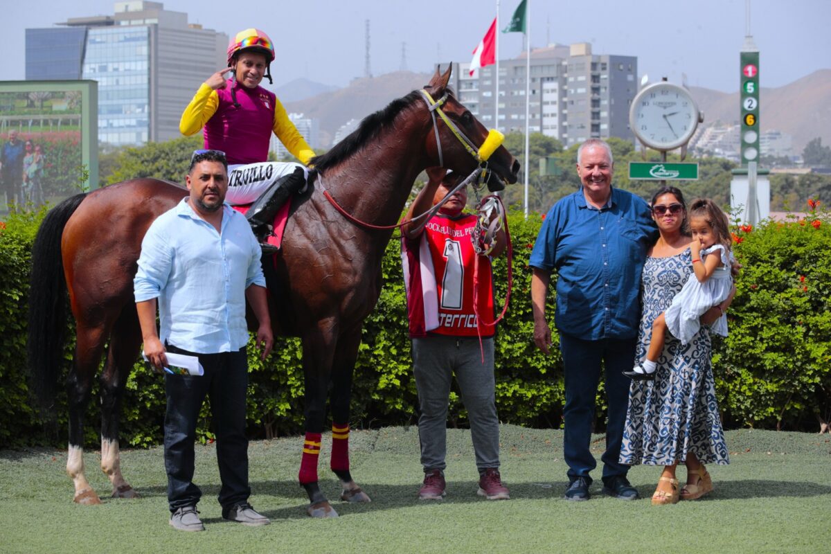 En su pista preferida, la castaña del stud The Fathers, con Carlos Trujillo en su silla, corriendo a la expectativa como acostumbra comenzó a avanzar resuelta antes de ingresar al derecho, para irse en pos de los ligeros, dominando a 150 mts de la meta y ganando por 1/4 cp en el tiempo de 1′ 56 «16 para los 1.800 mts – grass con baranda provisional, dándole una nueva alegría a su propietario quien se retrata junto a su familia y el preparador Camilo Traverso.