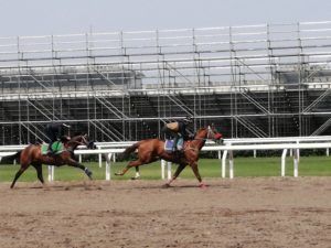 Azpirezca (E.Arévalo) 400 en 24″ ojo con la potranca del Aurora que debuta. Estuvo estupenda desde el partidor, dominando a su pareja.