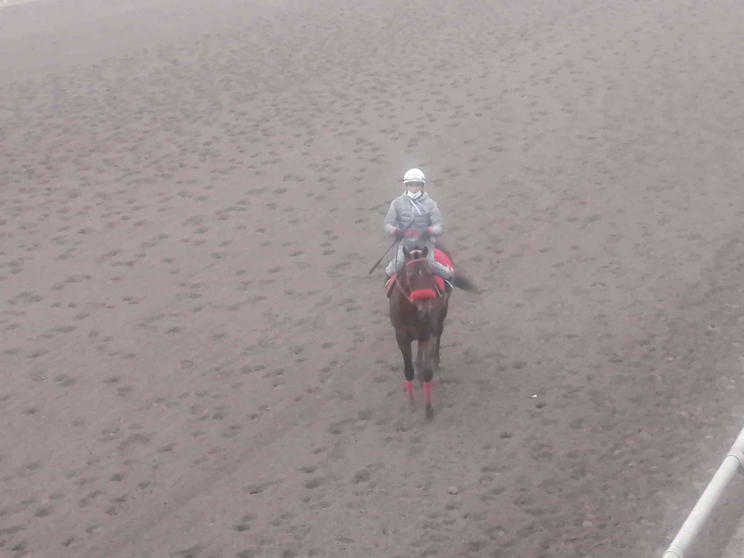 Ludwin Van (Aprendiz) 700 en 43″2 aun pesado, su jinete lo castigó.