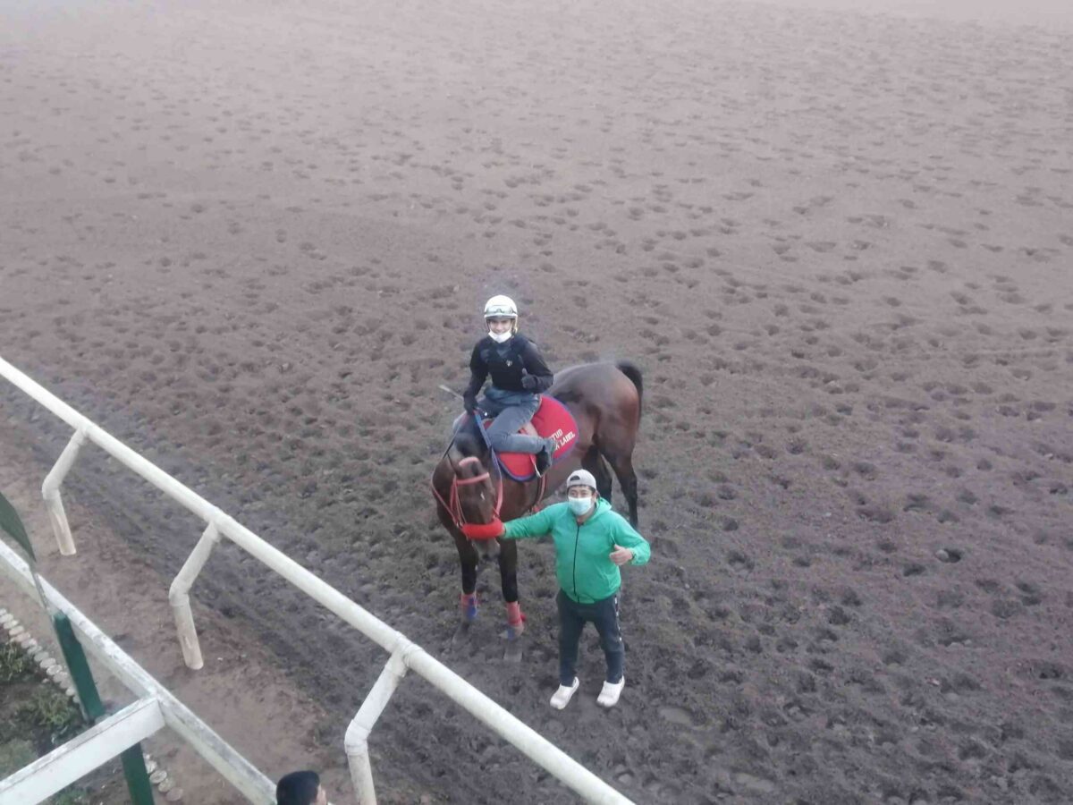 Novillero (M.Chuan) 1100 en 1’06″3 con 12″1. Trabajando en regla con buen accionar, el Southdale del Rancho Sur, para correr el Jockey Club del Perú.