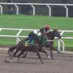 Moriki (M.Chuan) Hija de La Riquelme del Jet Set con Sawra(N.Guevara) del Edhen, 25″ para 400 metros, cumpliendo.