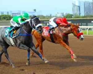 La egresada de Los Azahares no corría en la recta desde su ya lejano debut en el Iniciación, hoy la conducida por Huber Bocanegra se mantuvo en tenaz lucha con la del Unicornio hasta prevalecer sobre la meta en 56″1 para la distancia, dejando tercera a Corazonparaganar.