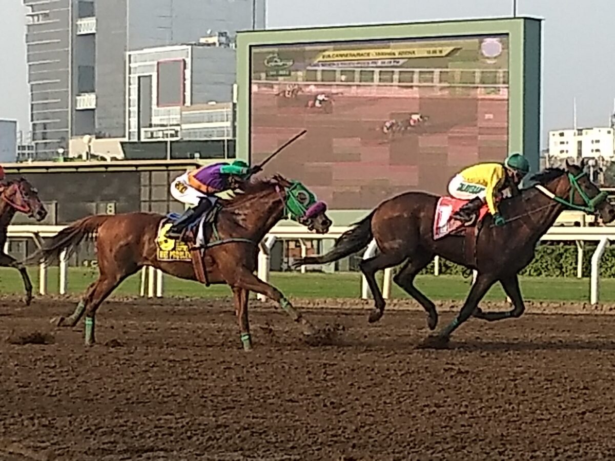 Storm Rodrigo (Dangerous Midge) avanzó con firmeza en la recta de las emociones del Clásico Asociación de Periodistas Hípicos del Perú. Edwin Talaverano se lo trajo de menor a mayor, ante un pleito inicial cazado entre Cafarnaum, El Coliseo y Niet Problem en 23’4 y 48′.