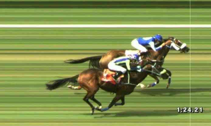Ahora a los cuatro años, siempre está en la candela. Hoy corrió en los palos, ahorrando terreno, mientras Kantor – su pareja-enseñaba el camino. En tierra derecha, el aprendiz Darién Balboa le pidió el esfuerzo ante el ataque del favorito Azador. Un pescuezo fue la diferencia en tiempo final de 1’24» y fracción sobre los 1400 metros en el grass.
