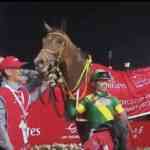 Cuando ALGIERS, el caballo irlandés, defensor de colores locales, parecía con toda la opción de cristalizar, emergió el asiático para pasar de largo en 2’03″55 para la distancia de 2000 metros. Tercero EMBLEM ROAD, el norteamericano en descollante actuación.