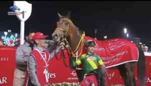 Confirmando el buen momento de la hípica japonesa, UshbaTesoro (Orfevre) vino desde el fondo del lote, con la monta de Yuga Kawada, para coronar el triunfo en la Dubai World Cup (G1, 12 millones $), la carrera central del Festival que montó esta jornada el Hipódromo de Meydan.