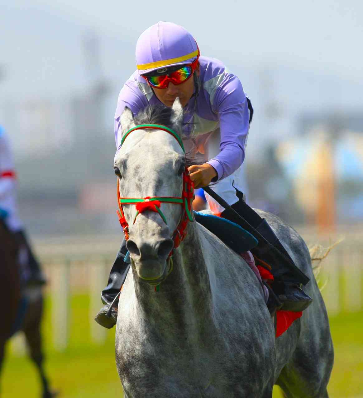 El tordillo hijo de Riviera Cocktail, Willhum, mantiene su producción sobre la pista de césped. Amparado en un peso de apenas 52 kilos, el favorito se sintió en el aire para atacar, desde temprano, sobre el puntero Abubakar y, en la recta, pudo contener el remate de King Diamond, el argentino, en llegada de medio cuerpo sobre el disco.